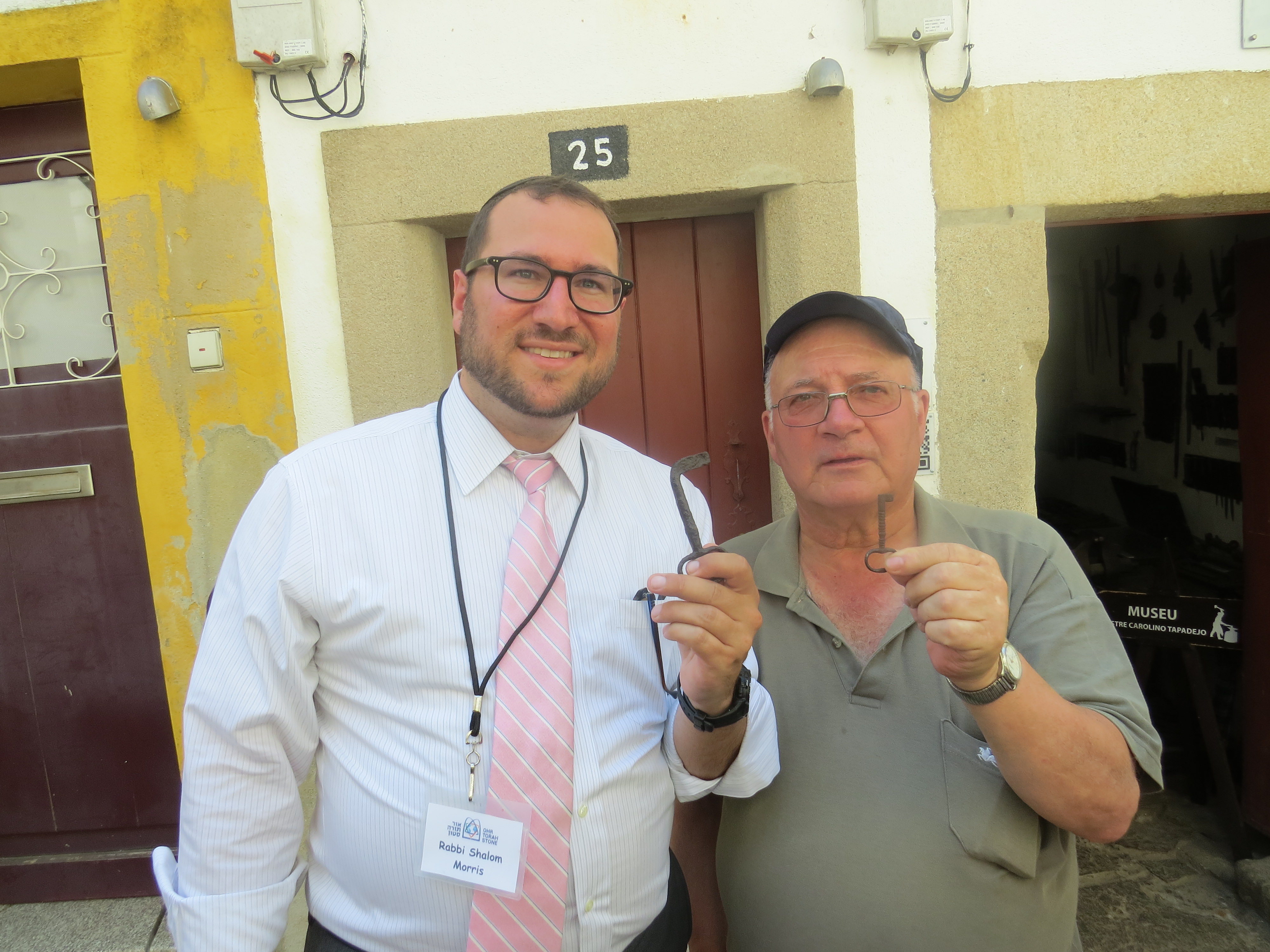 The most memorable moment of our visit came as a surprise, and left me speechless. Tapadejo told us that just in May 2015 he gave a tour of the town to an elderly woman from Netanya, Israel, named Esther Cohen. She told him that her family lived in Castelo de Vide before escaping to Constantinople in the early sixteenth century. They likely left in 1507 when the ports were finally opened to New Christians wishing to emigrate, following the massacre of three thousand New Christians in Lisbon in 1506. Upon her visit she showed him two keys. She told him that they were the keys to her ancestor’s former home in Castelo de Vide, held in her family’s possession for over 500 years! To our shock he then unwrapped the keys in front of us. Our group emitted a unified gasp as we witnessed tangible evidence of the ‘key story’ so often told of the Jews of the Expulsion. Our reaction provoked a strong emotional response in the elderly Tapajedo, who has worked so hard to uncover the town’s Jewish past. In front of us he began to cry. The keys are to be placed on display in the synagogue museum.